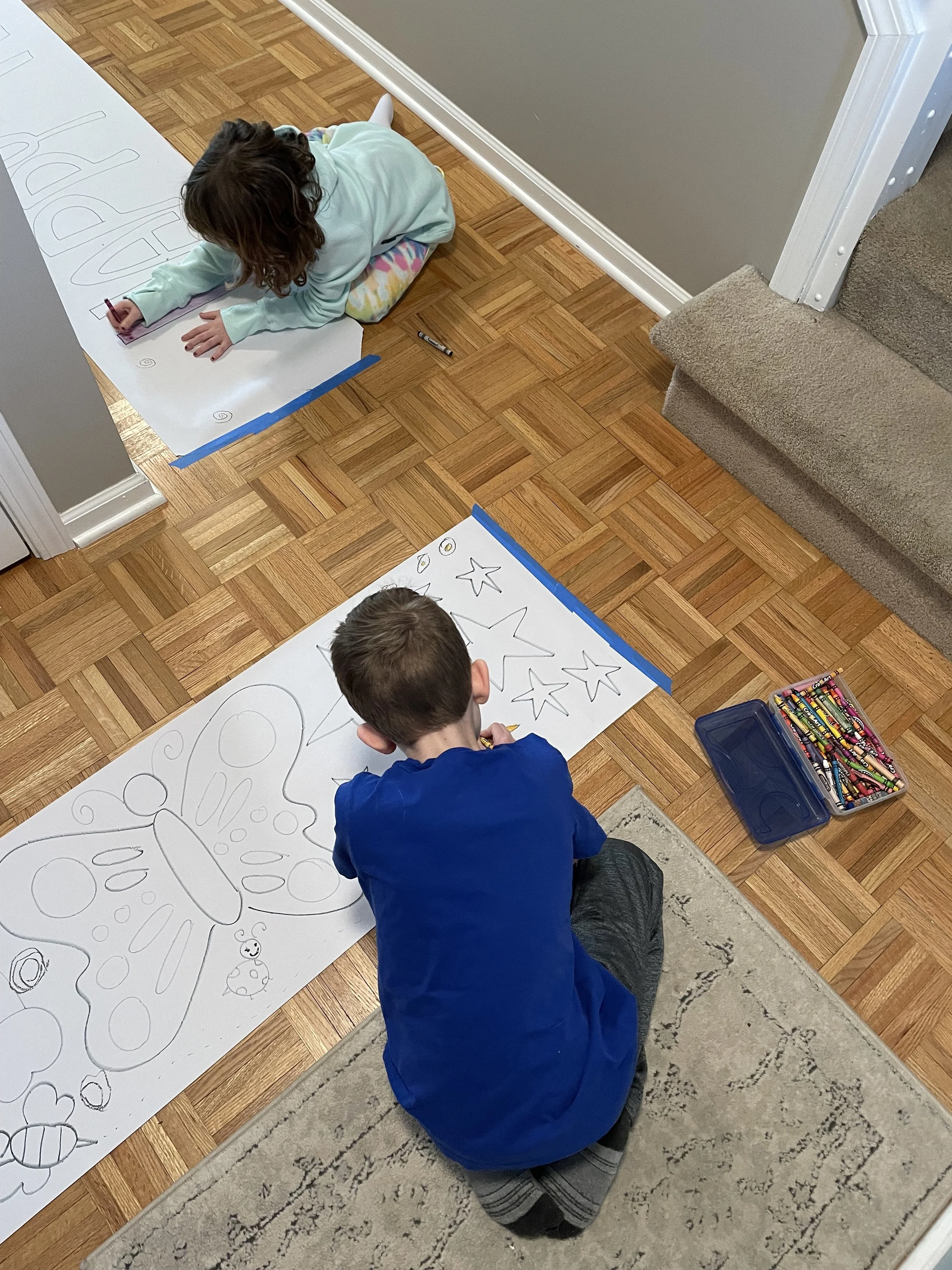 I love this activity because it’s super budget-friendly and the creative possibilities are pretty endless! Roll this paper down a hallway, across a hard floor or cover a table, bust out the crayons and colored pencils and let the kids’ imaginations run wild. They’ll have a blast drawing, writing or playing games on this large surface. Make some banners with the bigger kids to decorate for New Years or draw some shapes, letters or numbers to practice tracing and recognition with the younger kiddos. There are SO many possibilities! (A word of warning: be careful with markers - they could bleed through! Test yours before letting the kiddos loose on your floor.)