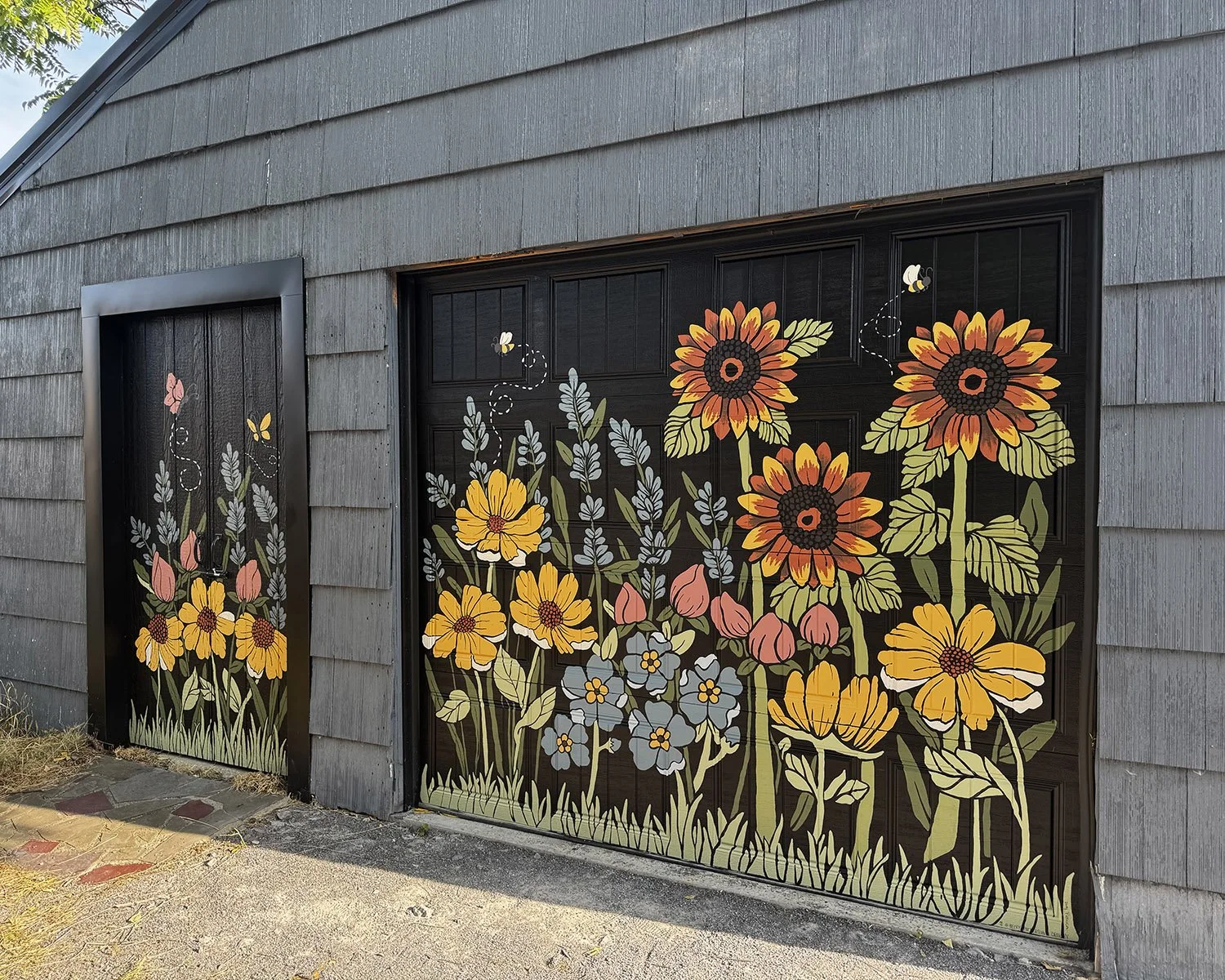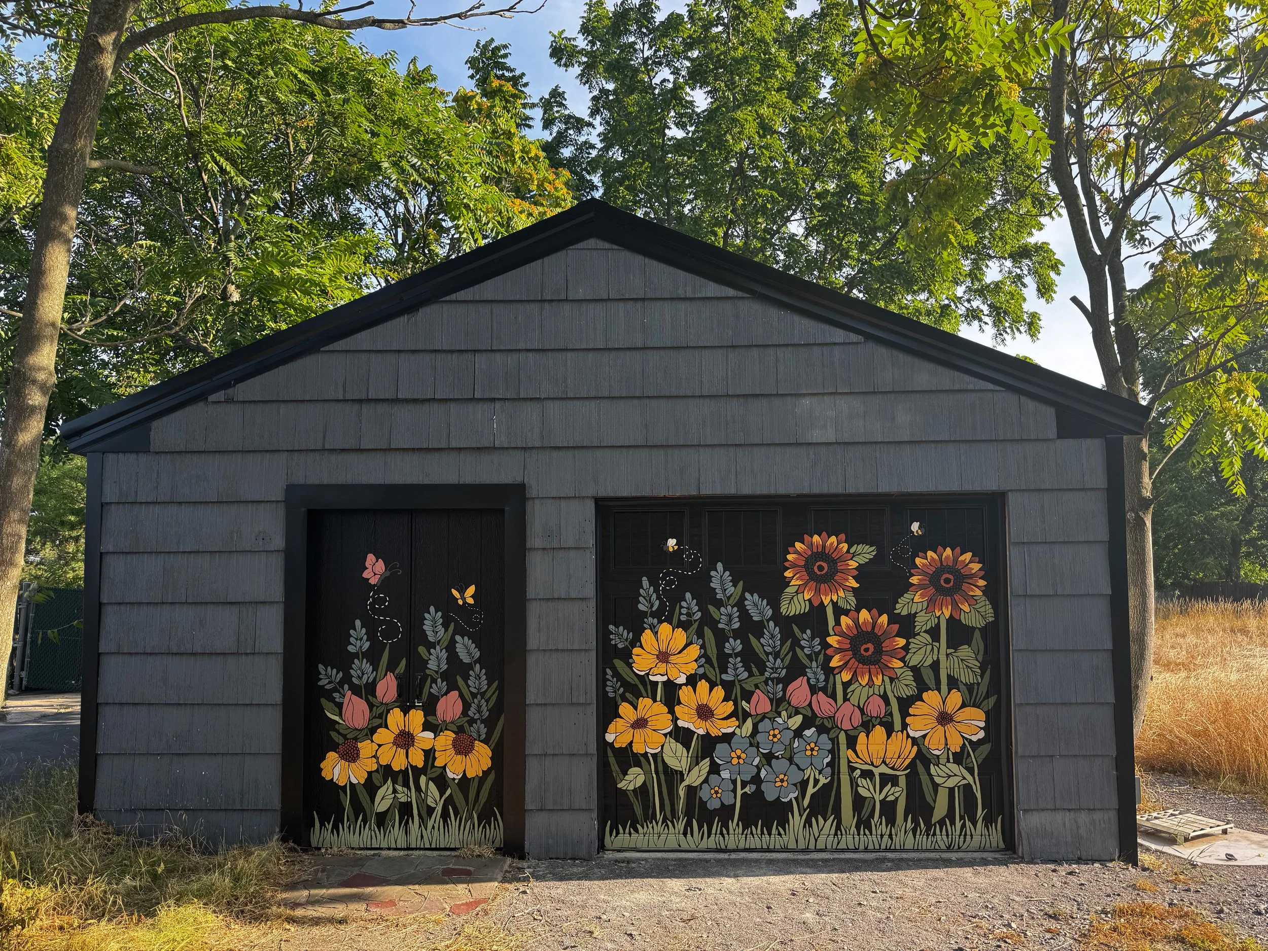 Poleon Comprehensive Wealth Management in Williamsville, NY brought me in to bring some color to their property. Their business sits in a charming, historic area of town, and the woods, gardens, and beautifully landscaped grounds surrounding the building provided rich inspiration for this piece. I set out to design something that would complement the landscaping, the natural beauty, and the character of the property itself.