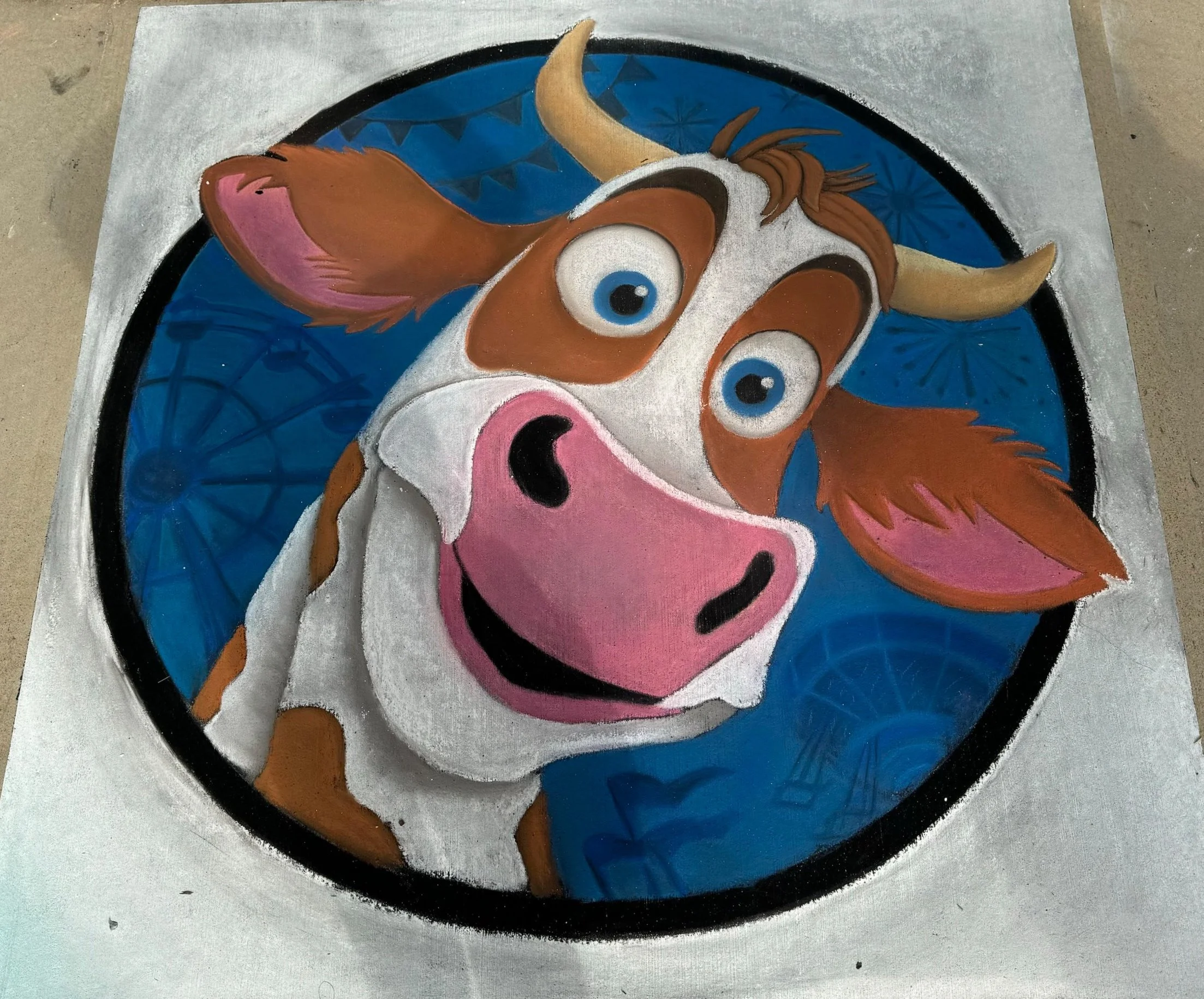 When Explore & More Children’s Museum in Buffalo, NY invited me to collaborate with them on a unique mural project, I couldn’t have been more thrilled! This project tapped into my love for drawing playful, quirky characters and pushed me to design a piece that fit within some unique parameters. Their desire was to have me illustrate a group of whimsical farm animals who appeared to be crammed into a glass elevator. The goal was to have this design printed on vinyl and installed on their 4th floor elevators doors, adjacent to their Farm to Fork and new Play & Learn Hive exhibits. It features their famous “Betty Lou Moo” cow, a playful pig, a silly goose and a game of cat & mouse, as well as some tiny details like bumble bees, a spider and a clumsy yellow bird. We also included a partial wall wrap featuring a barn exterior and themed signage with hand drawn lettering. The entire process from start to finish was such a joy to work on.